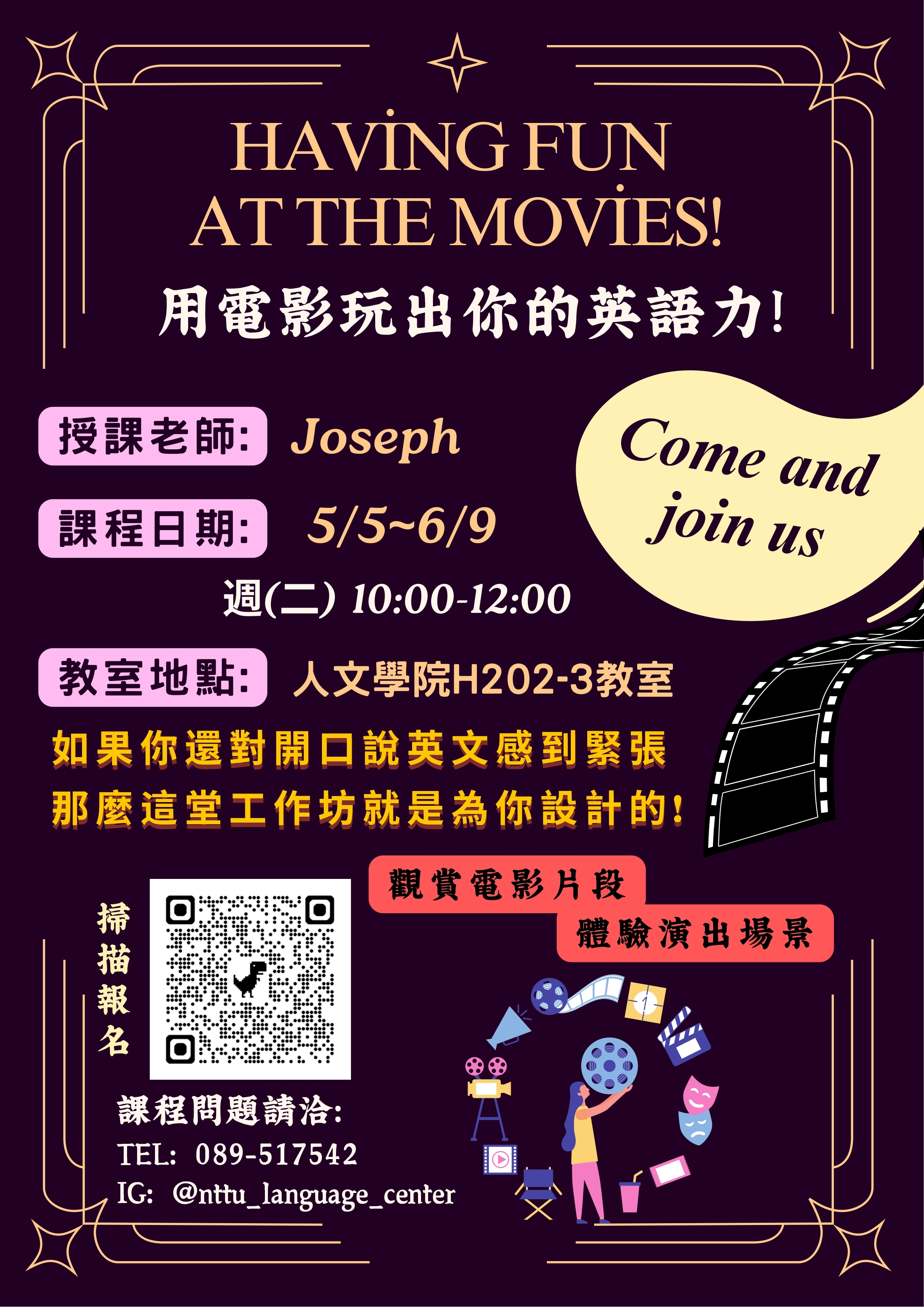 【語文發展中心】114-2「免費語言課程:Having Fun at the movies」feat.高教深耕計畫,開始報名囉,歡迎踴躍報名參加